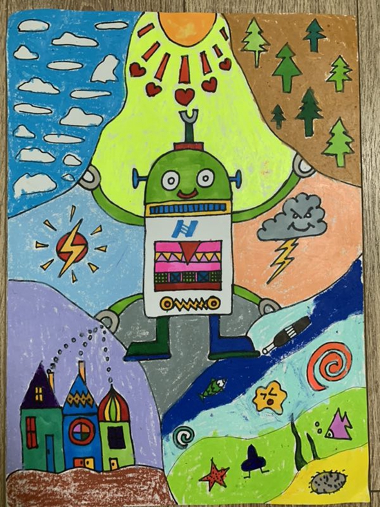 地球媽媽生病了你們用五彩的畫筆描繪心中的英雄畫出戰斗的氣勢一言一語流露心聲一筆一畫繪出真...